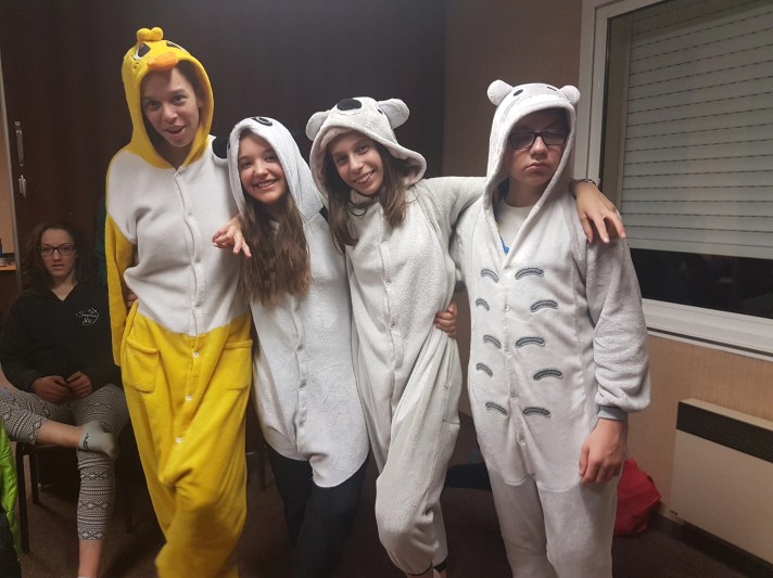 Ce week-end, les éclais ont rencontré des Scouts et Guides de France d’Angers, un petit groupe d’une vingtaine de jeunes avec qui ils vont partager un camp cet été. Au programme de cette rencontre : des jeux pour faire connaissance et pour mieux appréhender les différences des deux mouvements de scoutisme. Et bien sûr, un grand jeux sportif pour se défouler. Les éclais ont pu prendre des repères avec les nouveaux responsables (chefs) et débuter une belle relation d’amitié ! Un bon « Vis mon camp » en devenir ! Et en prime, une petite photo de nos fashion victims scoutes en kigurumi !