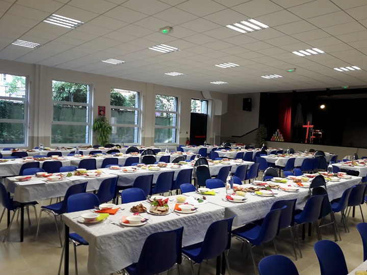 Le gros de la journée a été le banquet de 200 personnes, en simultané d’un grand spectacle sur la vie de Luther, où certains scouts étaient même comédiens. Ils ont pu saluer certains de leurs amis louveteaux/louvettes ou éclais, et même leur CGL, qui avait revêtu son costume d’actrice. Nos petits scouts ont été parfait pendant ce banquet, puisqu’ils ont fait le service de tout le repas pour tout le monde, et se sont parfaitement débrouillés. Au menu : soupe à l’oignon, goulash purée de pois cassé et chou rouge, tarte au fromage blanc.