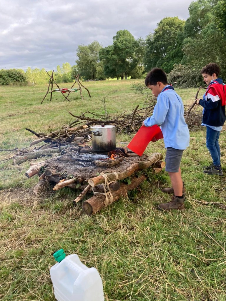 Les louveteaux et louvettes ont dû apprendre à vivre en communauté et la vie quotidienne a bien rythmé nos journées : cuisine, vaisselle, nettoyage et rangement du camp, ramassage du bois et remplissage des jerricans d’eau… Tous ont participé. Heureusement, il n’y avait pas que les services dans la journée : concours de bouffe, olympiades, thèque, veillée casino, boum, explo, repas trappeur, nuit à la belle étoile, ventriglisse, bataille d’eau, journée village et grands jeux : oh, ça oui, nous nous sommes vraiment bien amusés !