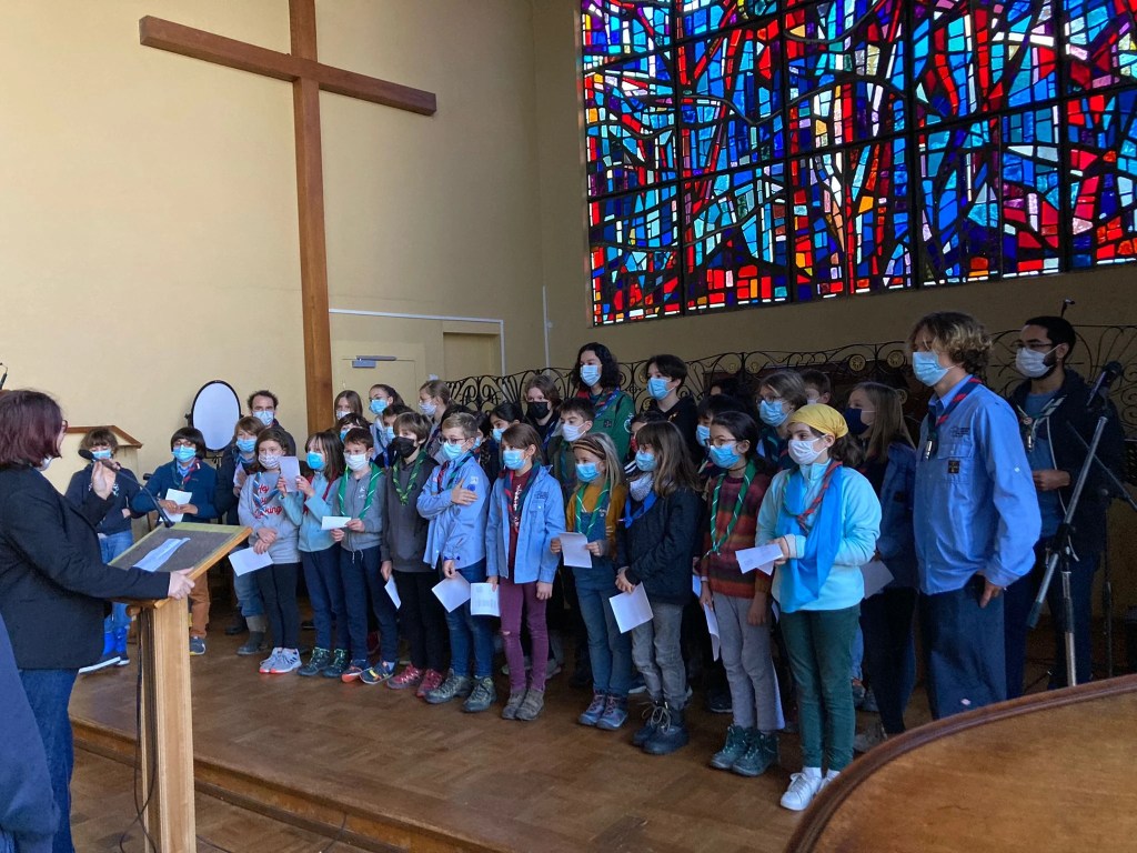Le week-end de Noël s’est déroulé au temple, il a rassemblé les louveteaux et louvette et les éclaireurs et éclaireuses. Nous avons chanté, lors du culte de l’Avent de ce dimanche, Noël c’est l’amour, que nous avions répété la veille. Ce fut un super moment ou chacun a donné de sa belle voix.