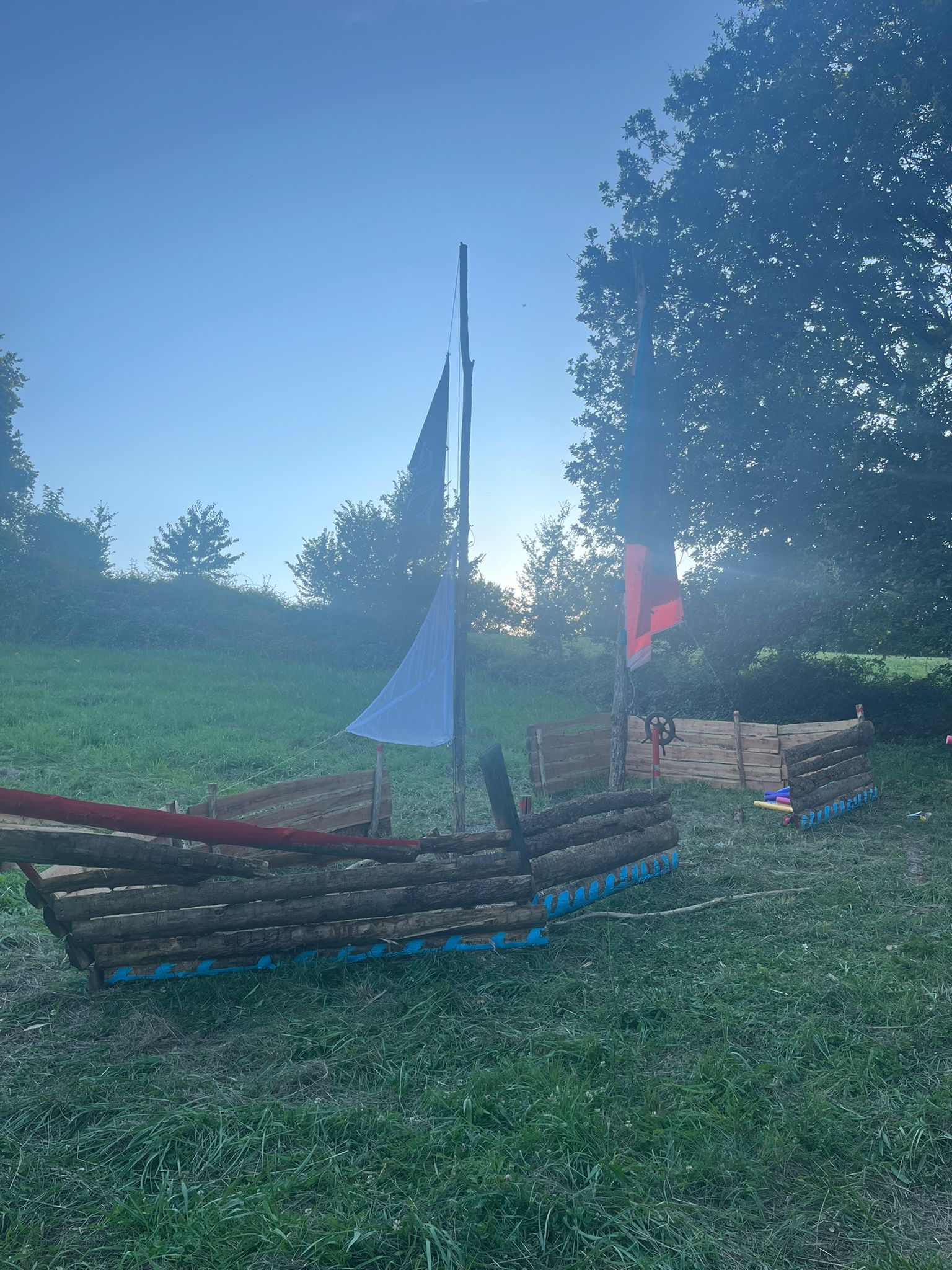 Heureusement, cette invasion capillaire n’a pas éclipsé les autres temps forts. Lorsque nous avons demandé aux resps de partager leurs meilleurs souvenirs, ils ont immédiatement évoqué les nombreux jeux folklorisés qui ont animé le camp, avec pour décor l’impressionnant bateau pirate spécialement construit pour l’occasion et son mât de 4 mètres. Parmi les moments les plus marquants, la bataille navale ayant opposé Barbossa et ses moussaillons à la Marine, avec des combats d’épées… en mousse, bien sûr ! Bien classée aussi dans la liste des évocations, l’OP (« opération périlleuse »), un grand jeu épique se déroulant sur une journée entière, où les deux branches se sont alliées pour libérer Will Turner, capturé par le terrible Davy Jones. Les défis étaient nombreux, mais grâce au travail d’équipe, rien n’aurait pu arrêter nos louveteaux, louvettes et éclais !