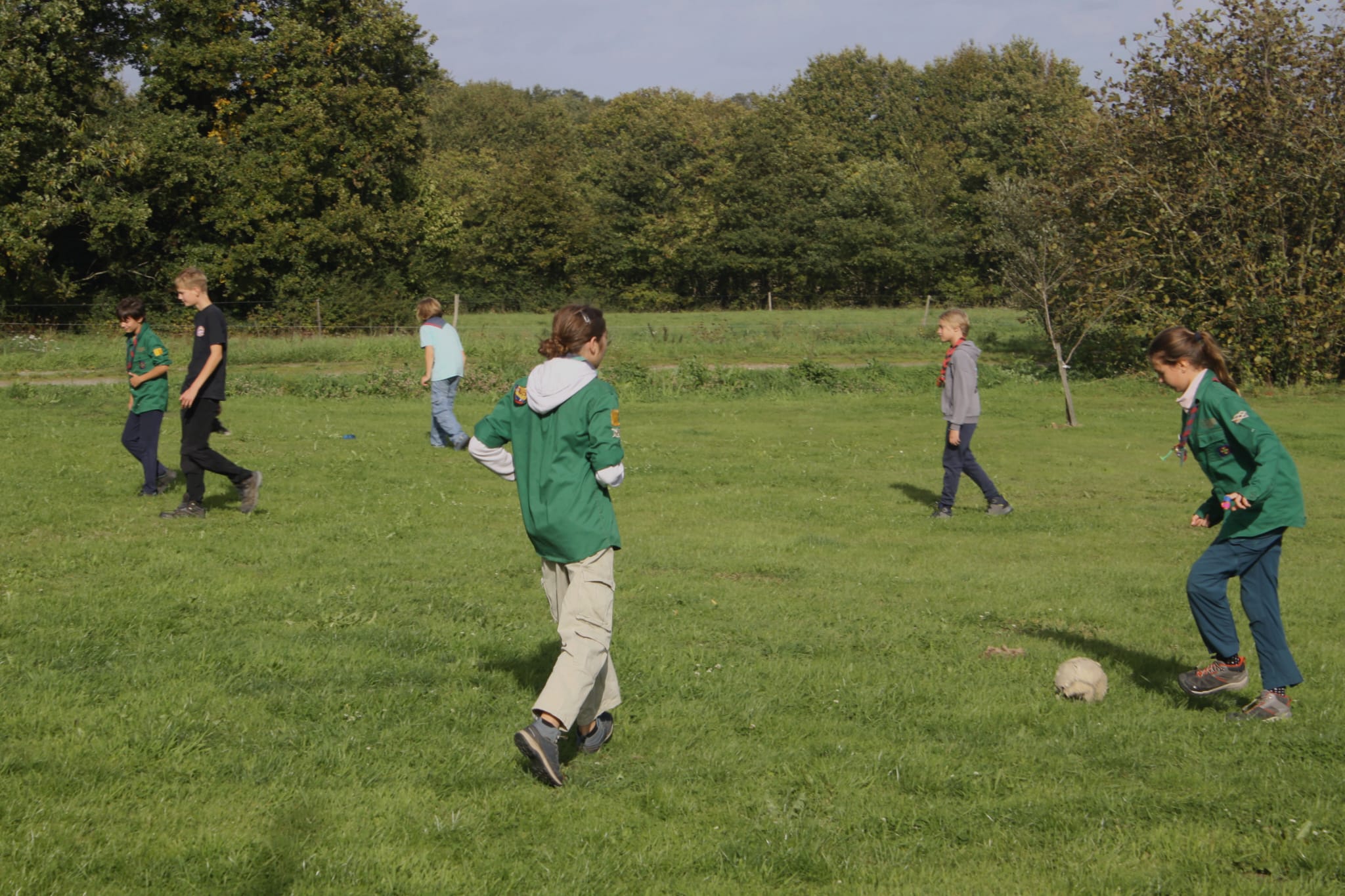 Qui dit nouvelle année, dit nouveauté ! Tout d’abord, en prenant le temps d’accueillir par des jeux de présentation et d’initiation au montage des tentes ceux qui viennent d’intégrer la troupe : 8 nouvelles recrues issues principalement des louveteaux et louvettes, mais aussi d’ailleurs ! Plus une recrue pas comme les autres… Vadrouille, la chienne du propriétaire venue jouer au foot et qui a déjà le sens de l’équipe… ! Bienvenue à tous nos nouveaux éclais !